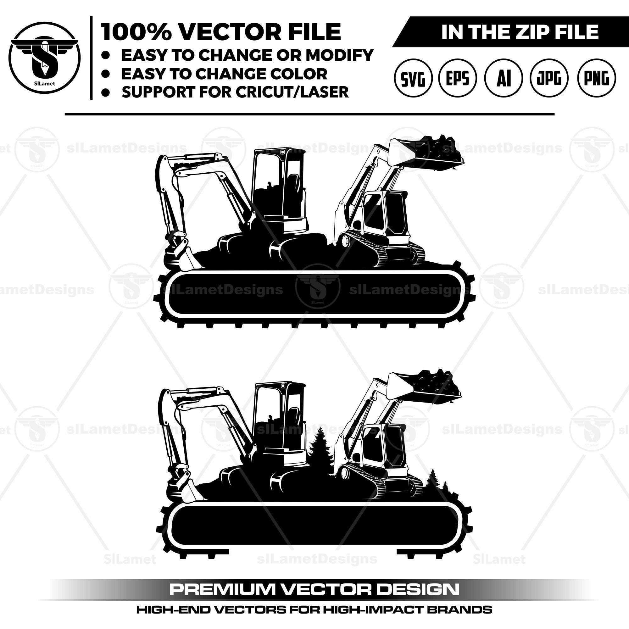 skid steer svg, wheel loader svg, mini excavator svg, excavator logo svg, vehicle graphic svg, industrial logo art, bulldozer logo, contractor logo set, builder vector art, machinery clip art, digging machine art, heavy equipment svg, compact track loader