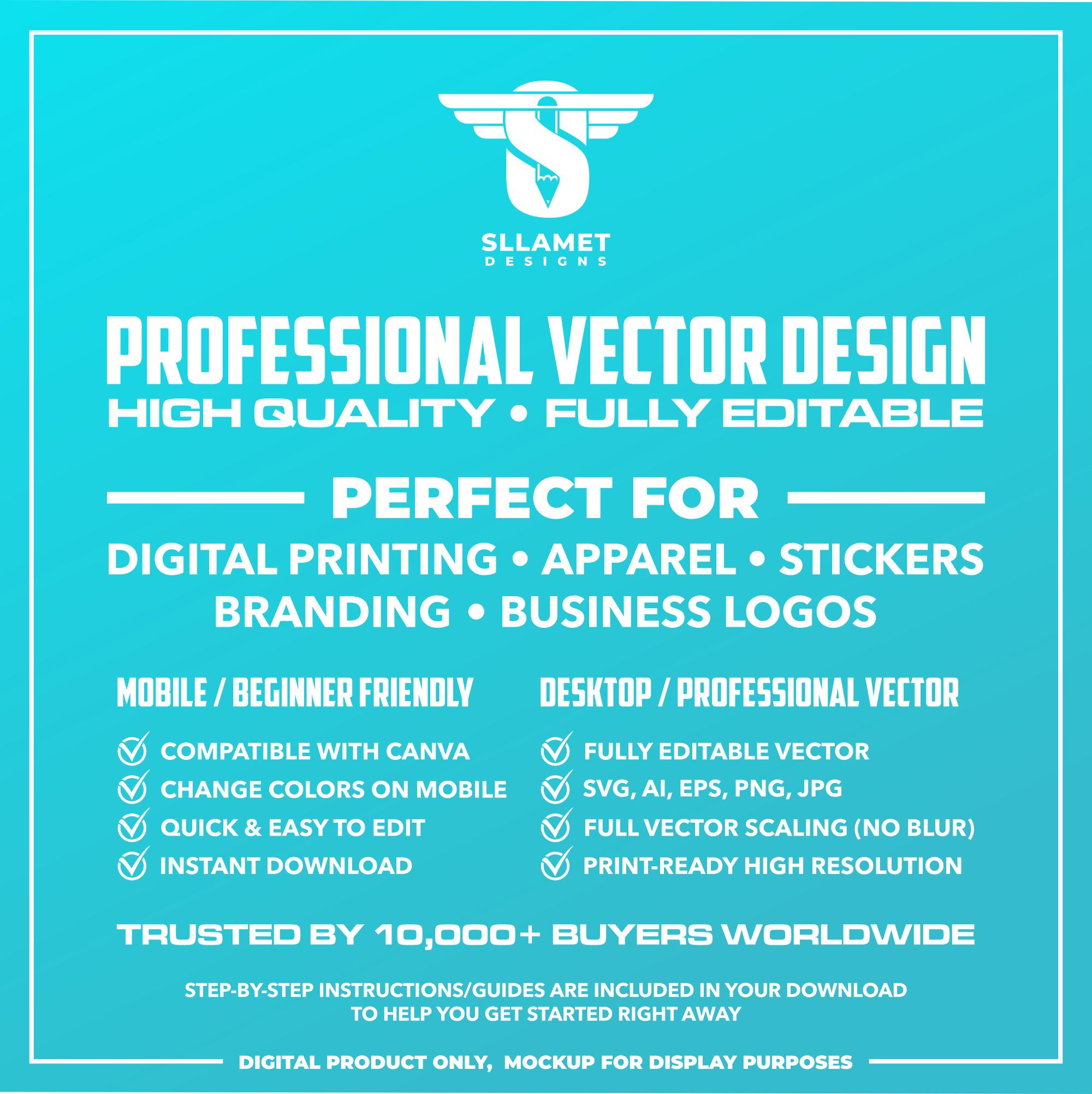 - EPS & AI Files – Industry-standard vector formats for professional editing (Adobe Illustrator, CorelDRAW)