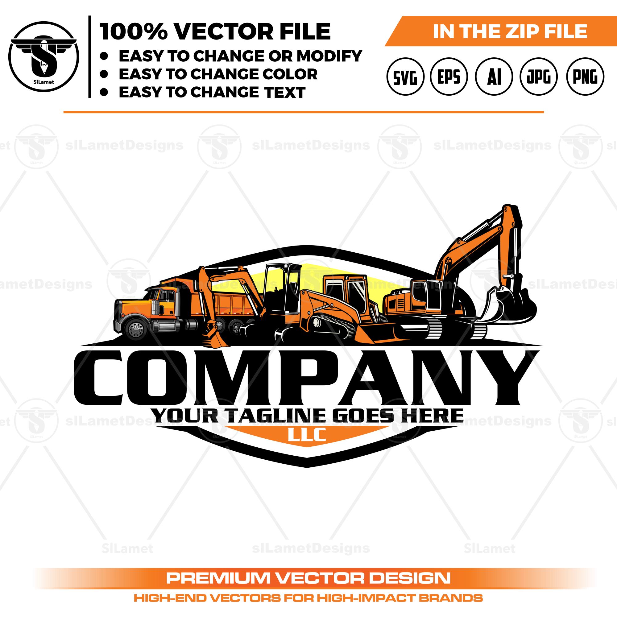 heavy equipment svg, dump truck, mini excavator, truck logo, skid steer svg, bulldozer svg, equipment vehicles, loader logo, excavator eps, builder merch art, contractor vector, truck company logo, excavation team gift