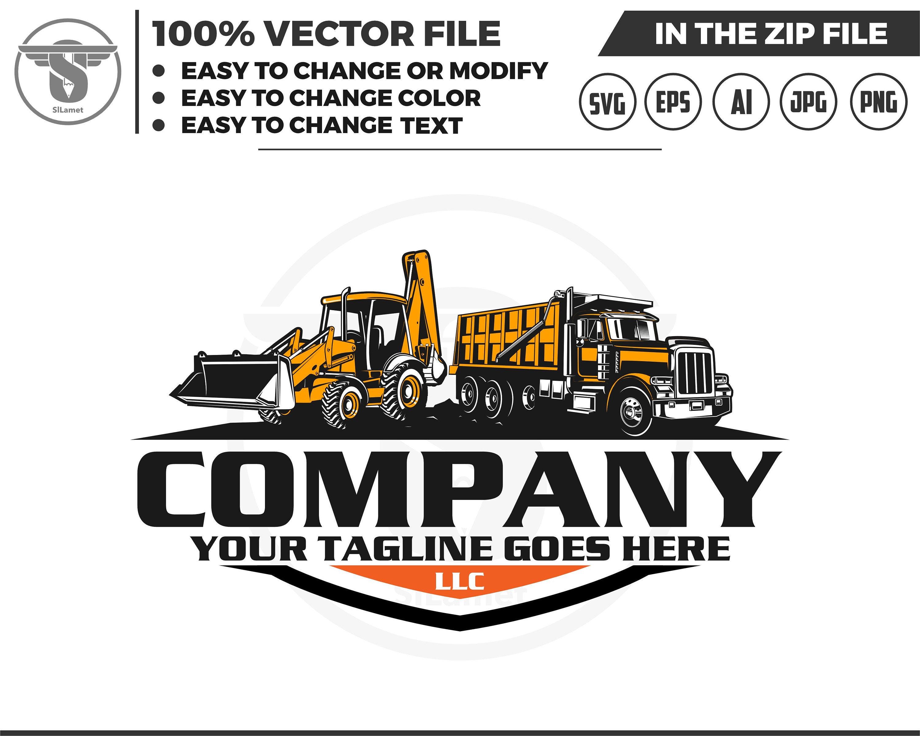 Backhoe Truck Logo: Dump Trailer and Excavation Vector for Construction Identity Branding