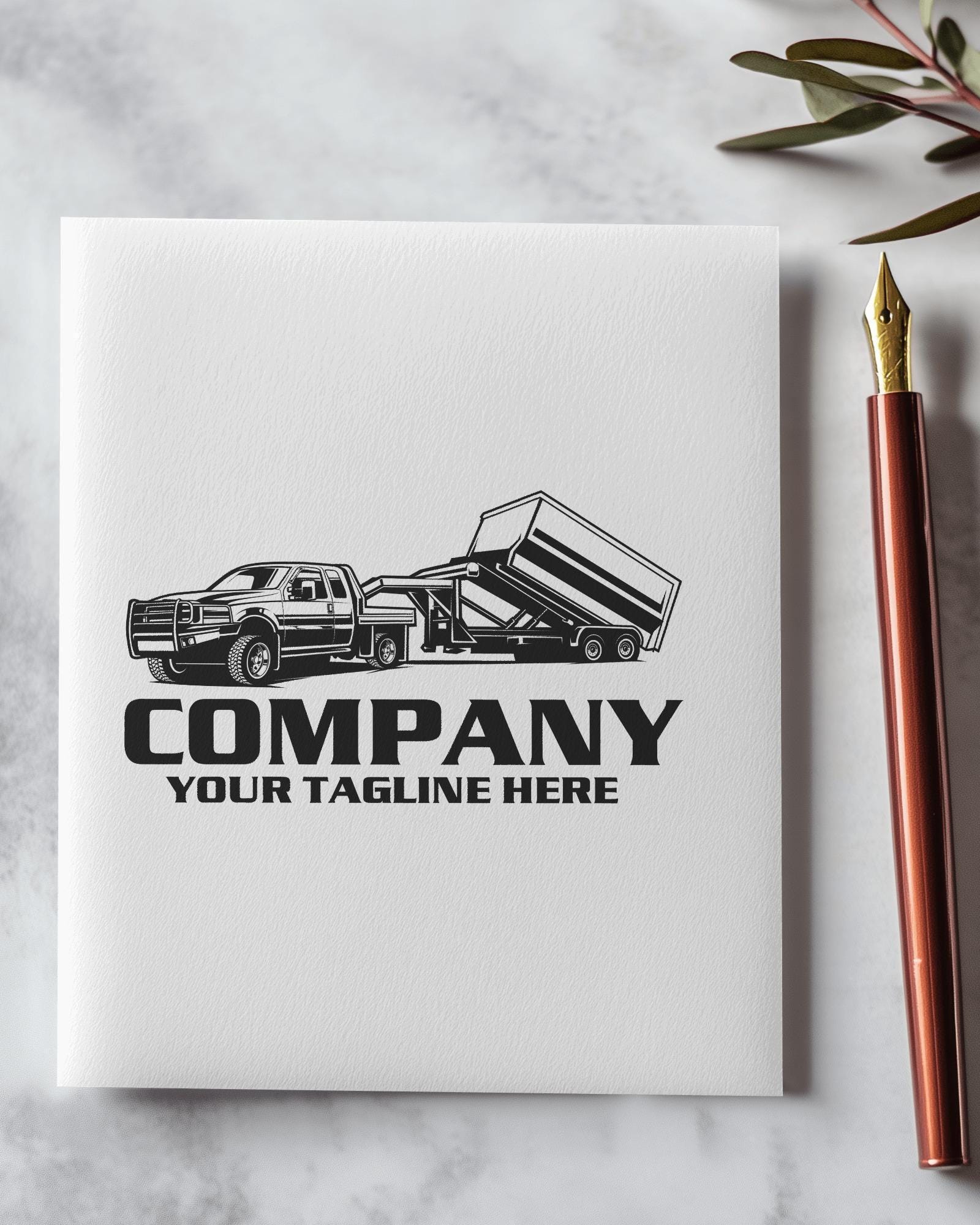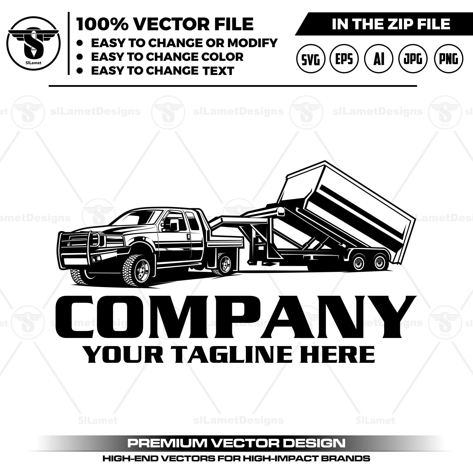 trailer towing logo, pickup and dump, pickup silhouette, truck dump trailer, trailer rental logo, trailer dump, pickup dump trailer, hauler business logo, dump service logo, bumper pull dump, clean trash logo, customizable hauling, dump towing