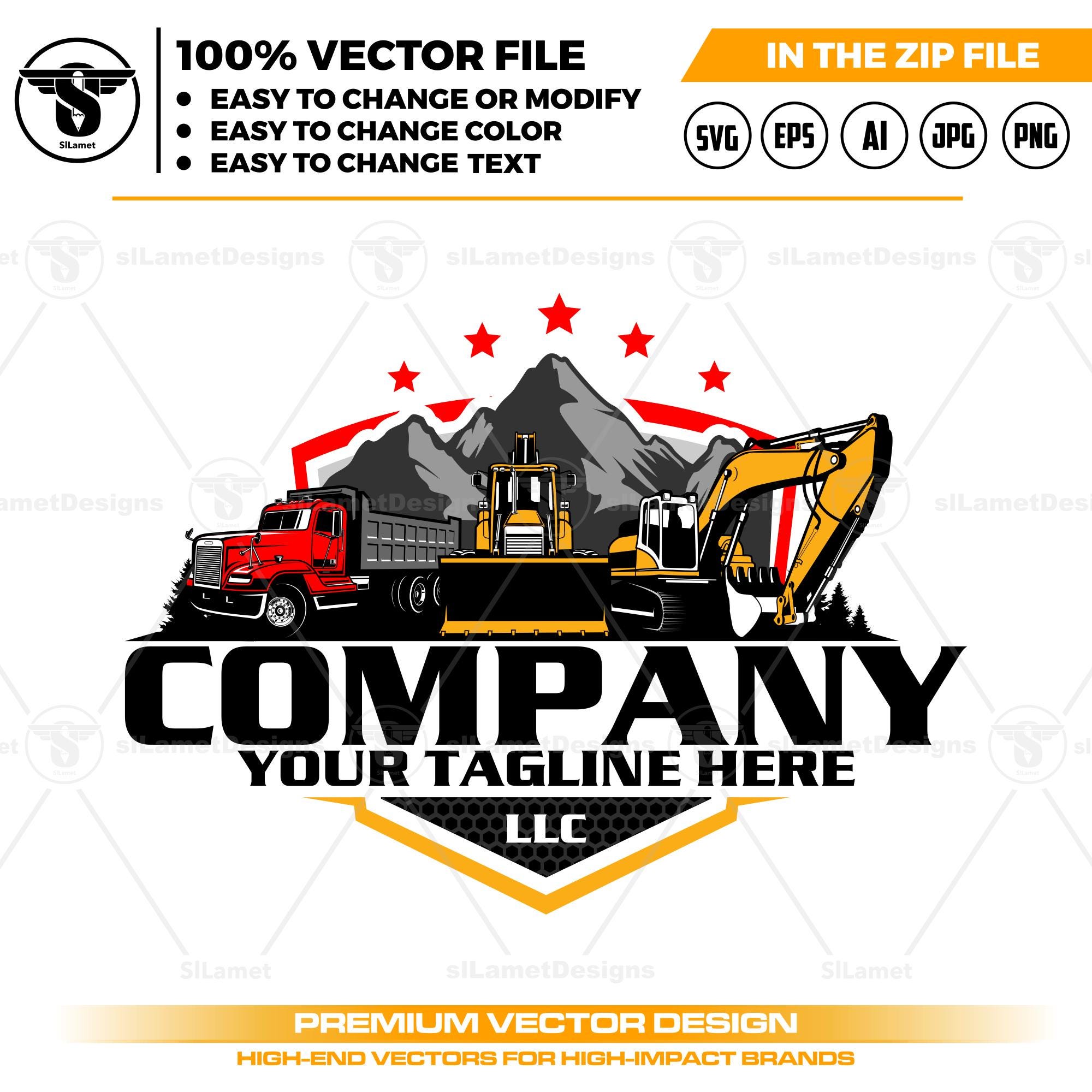 heavy equipment svg, dump truck, skid steer svg, bulldozer svg, equipment vehicles, excavator vector, construction logo, industrial logo art, contractor branding, machinery logo svg, landscaper logo svg, excavation branding, tool rental logo