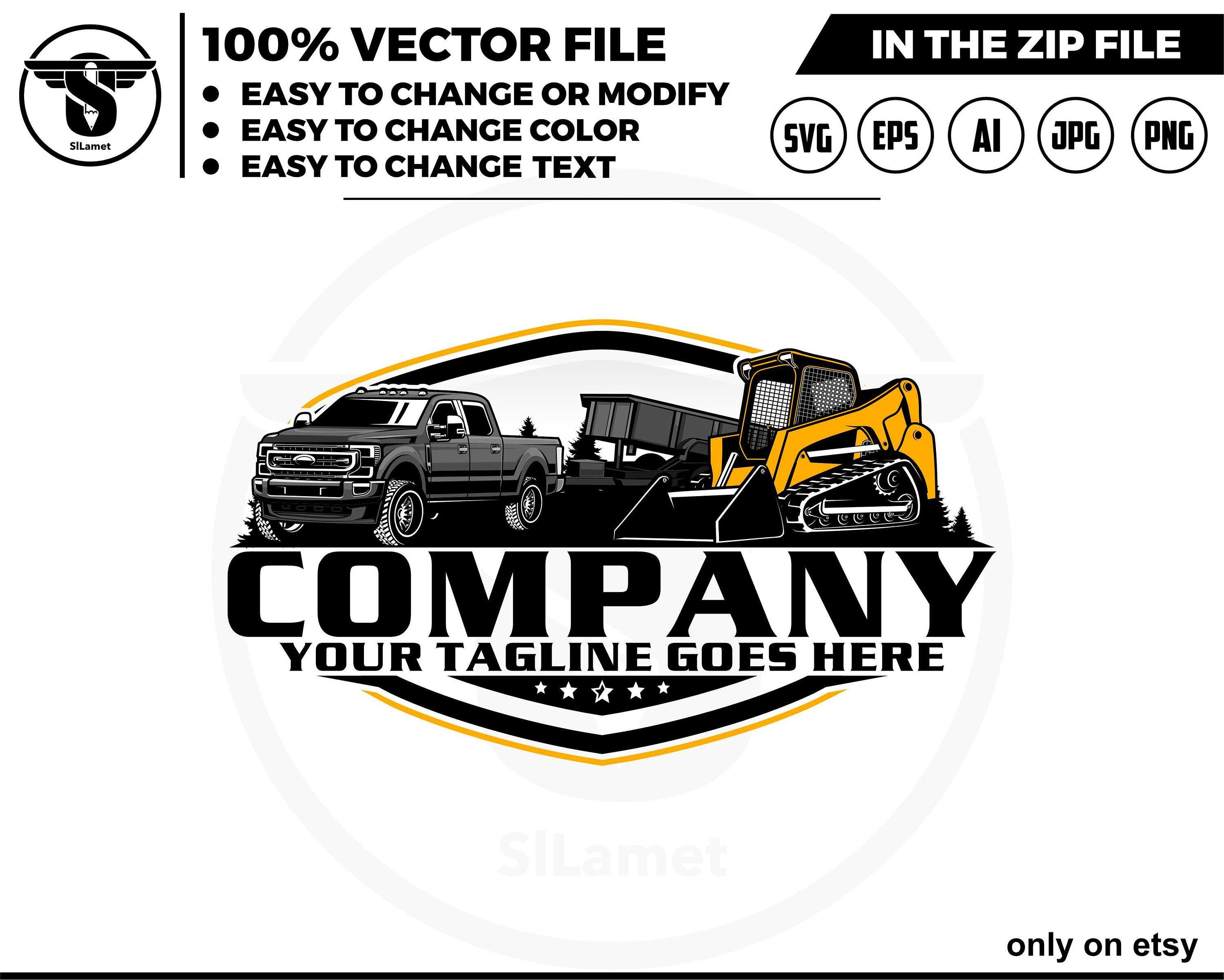 Pickup Truck Logo: Dump Trailer and Skid Steer Vector for Identity Branding