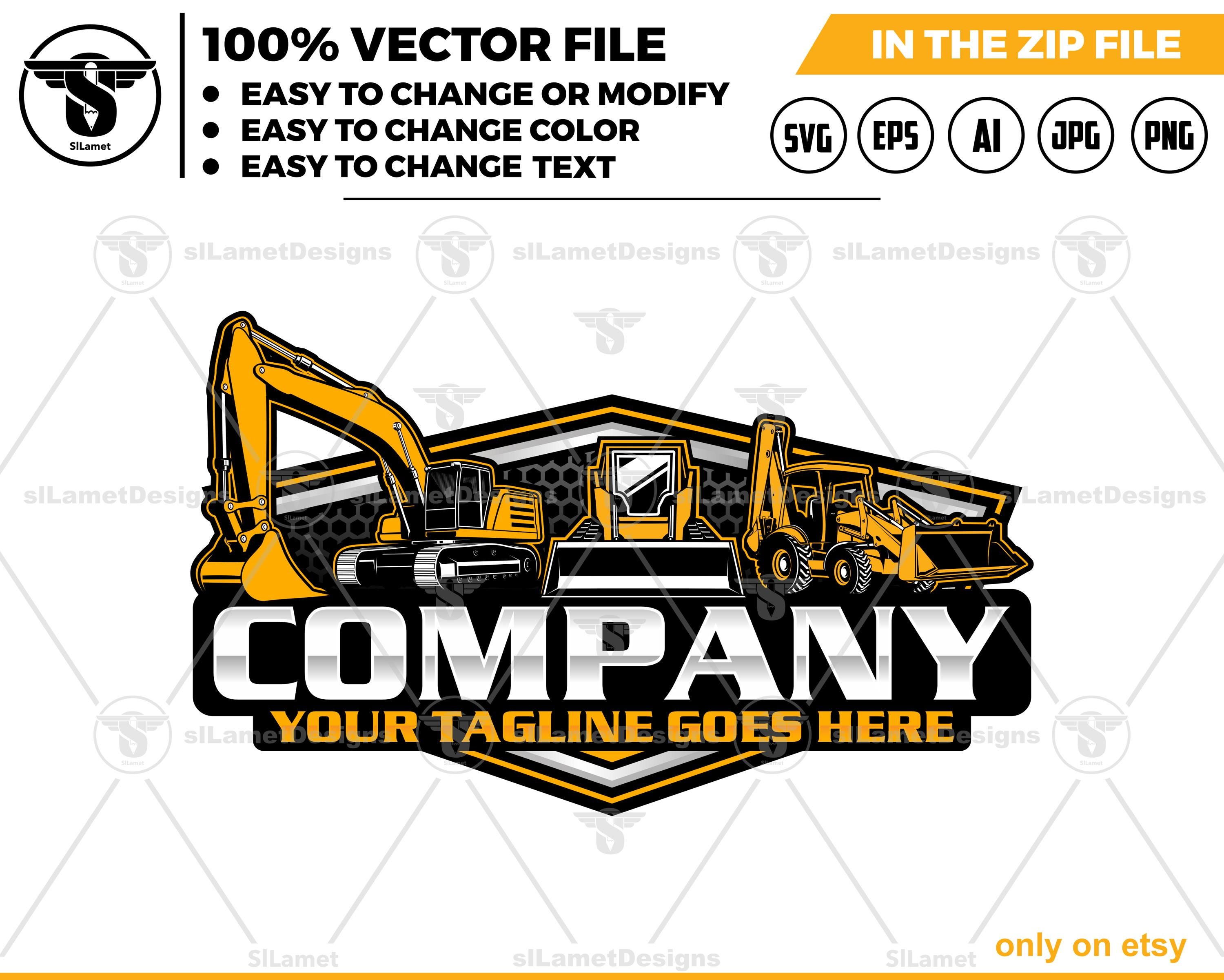 equipment vehicles logo, heavy equipment svg, backhoe, Skid steer, excavator