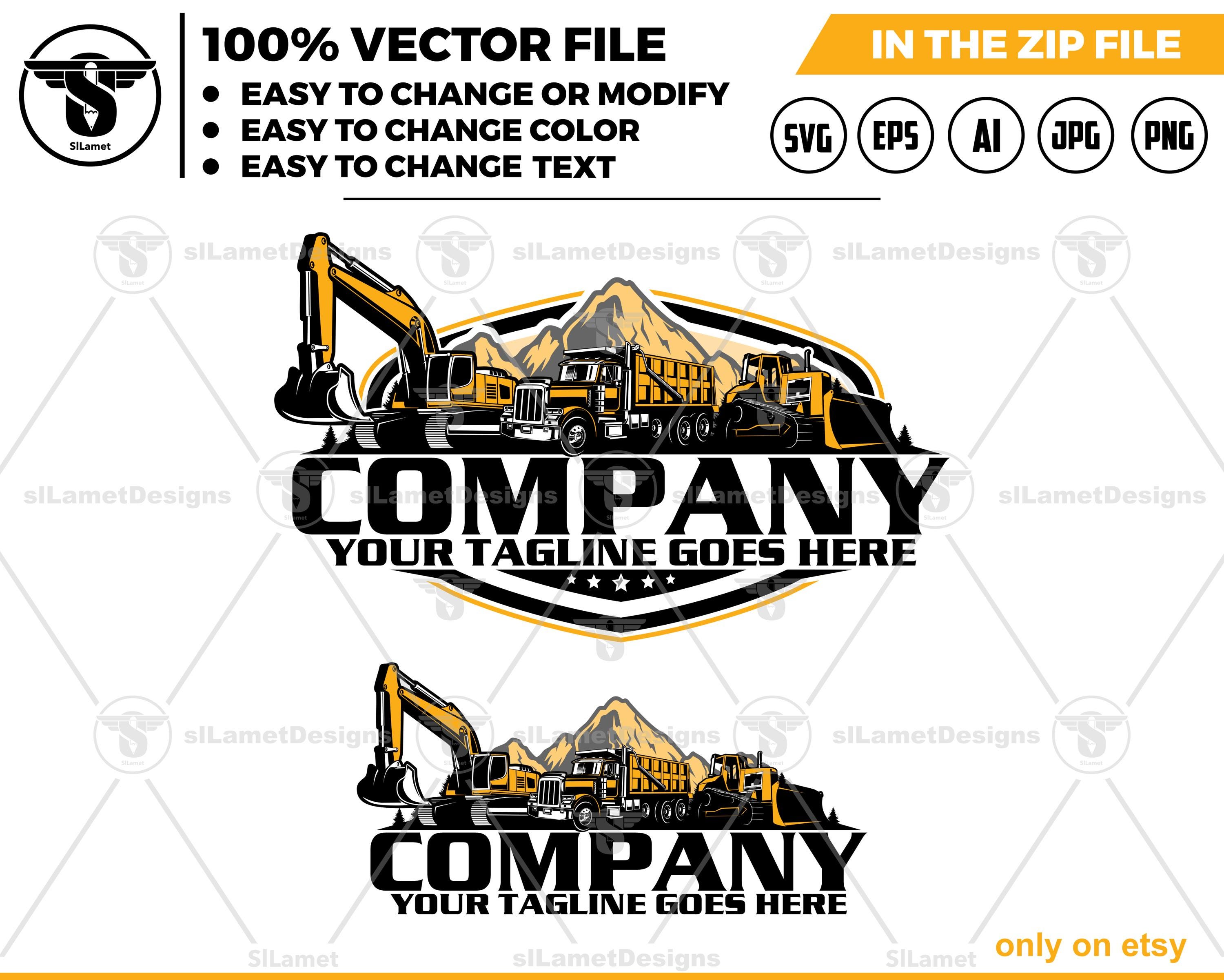 mountain heavy equipment logo - dump truck, excavator, dozer logo
