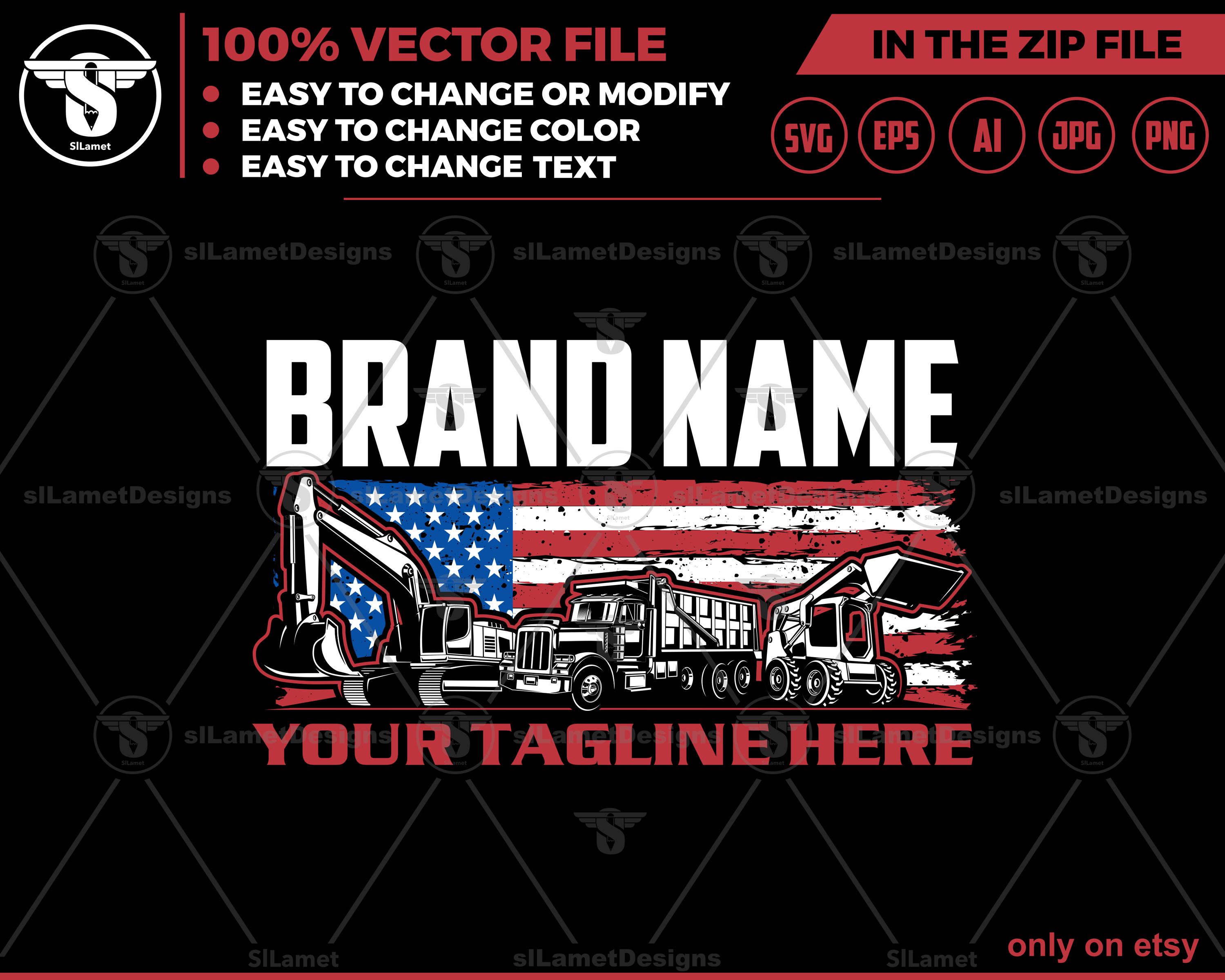 american heavy equipment logo - dump truck, excavator, skid steer logo