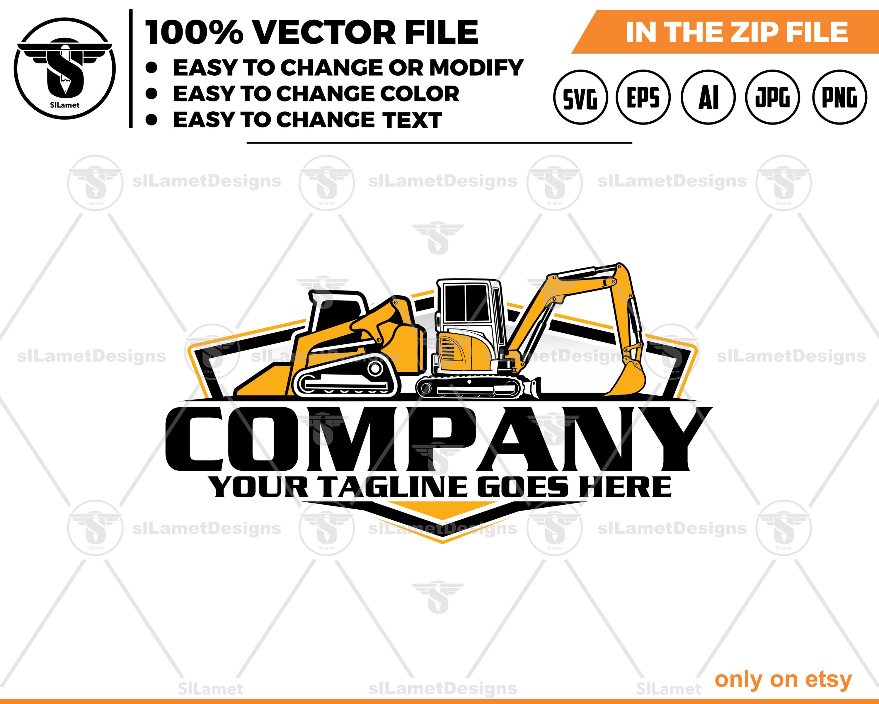 skid steer and Mini Excavator Logo - Construction logo - Compact Equipment svg : side view