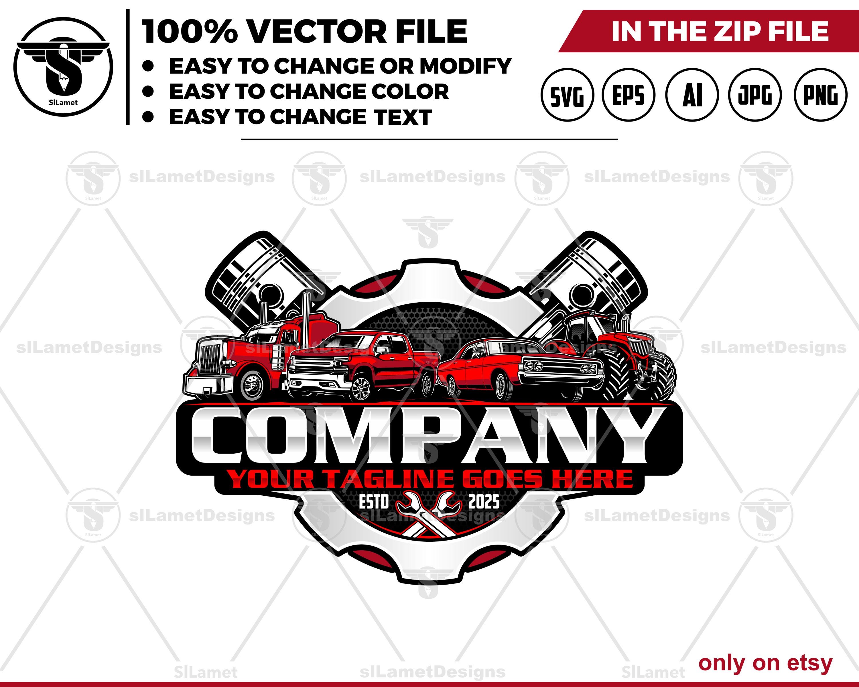 vehicles repair logo - car repair logo template, auto fix logo, car service logo : truck, car, pickup, tractor