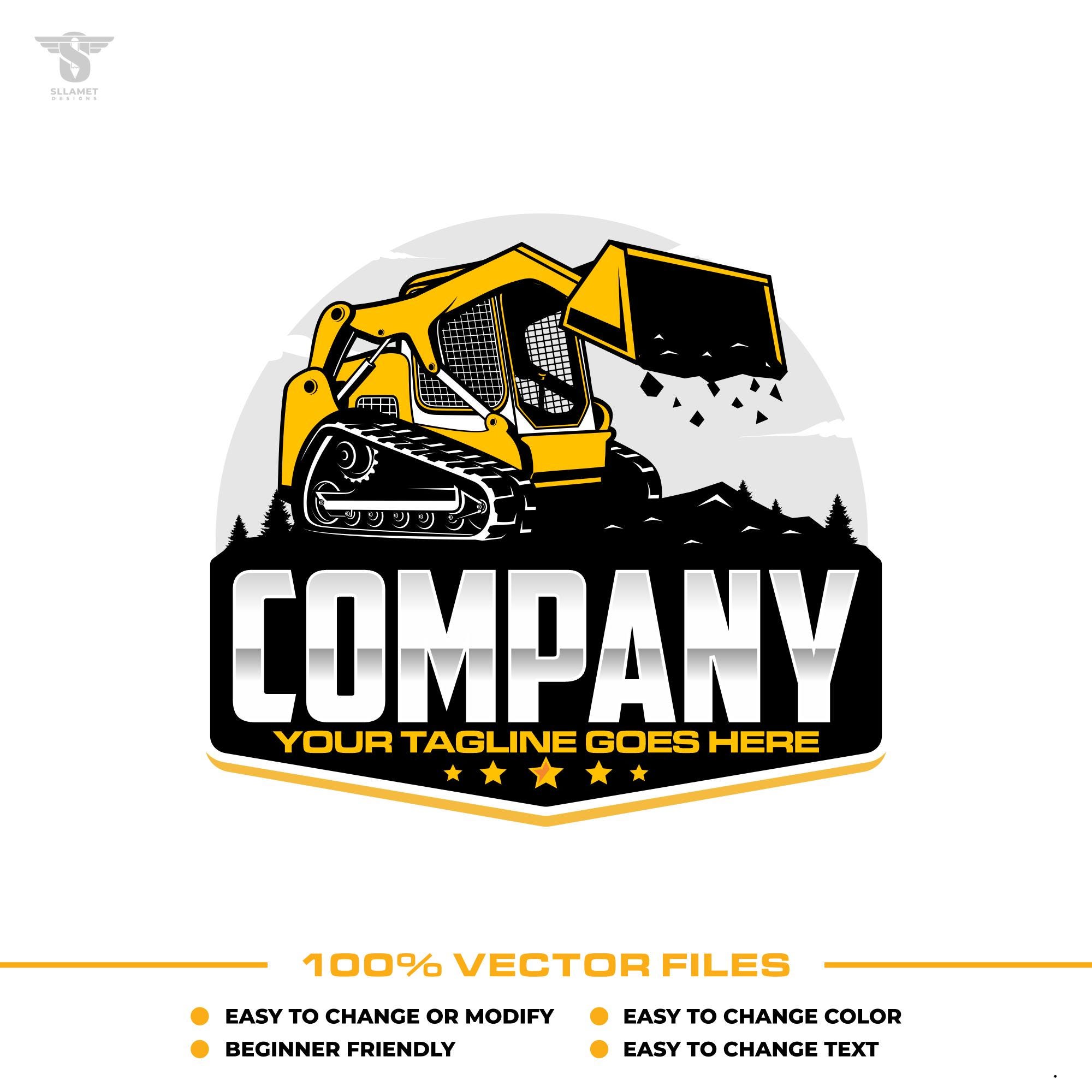 Skid Steer Logo: Excavation Art and Construction Site Vector, Fully Editable