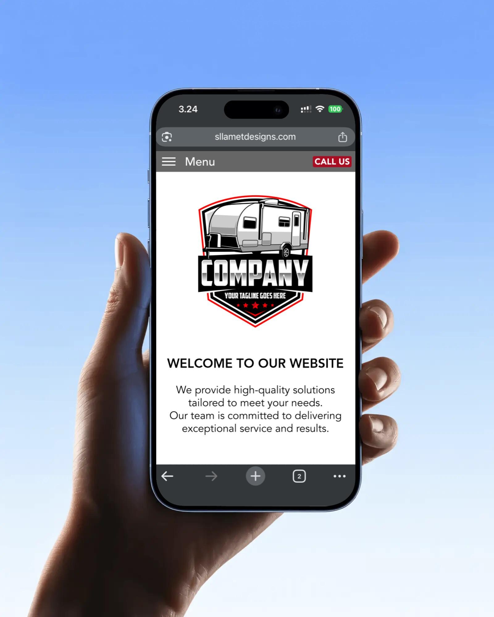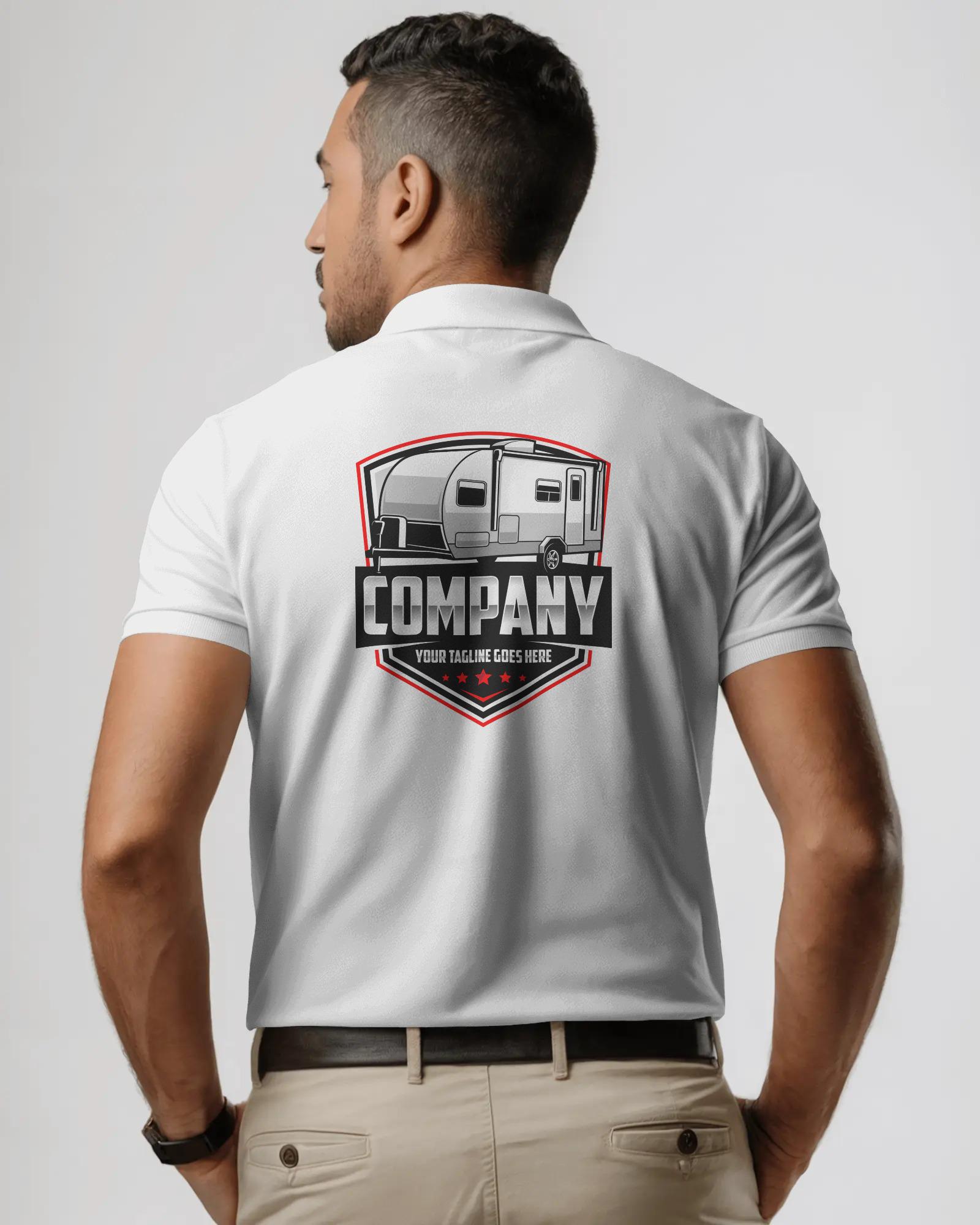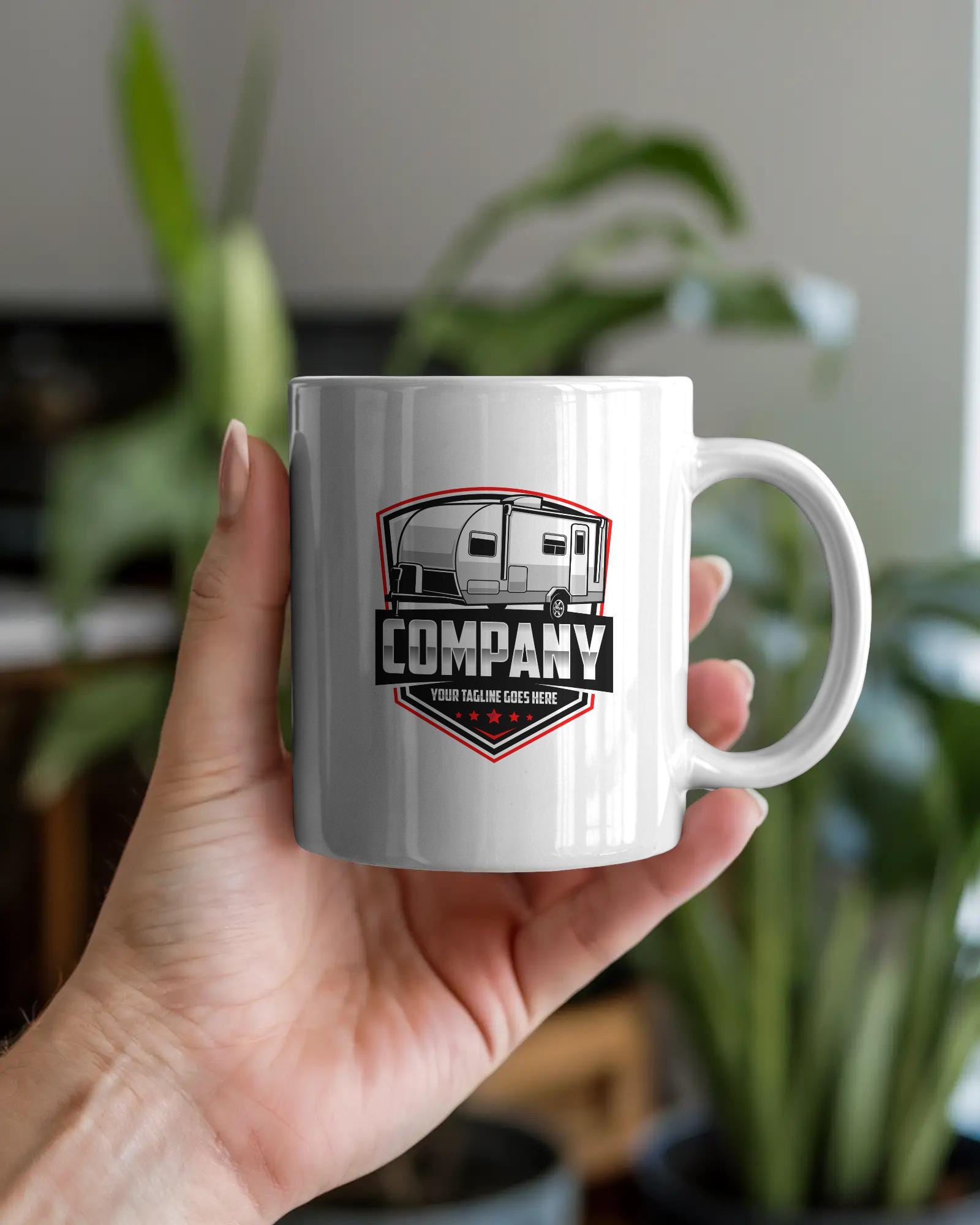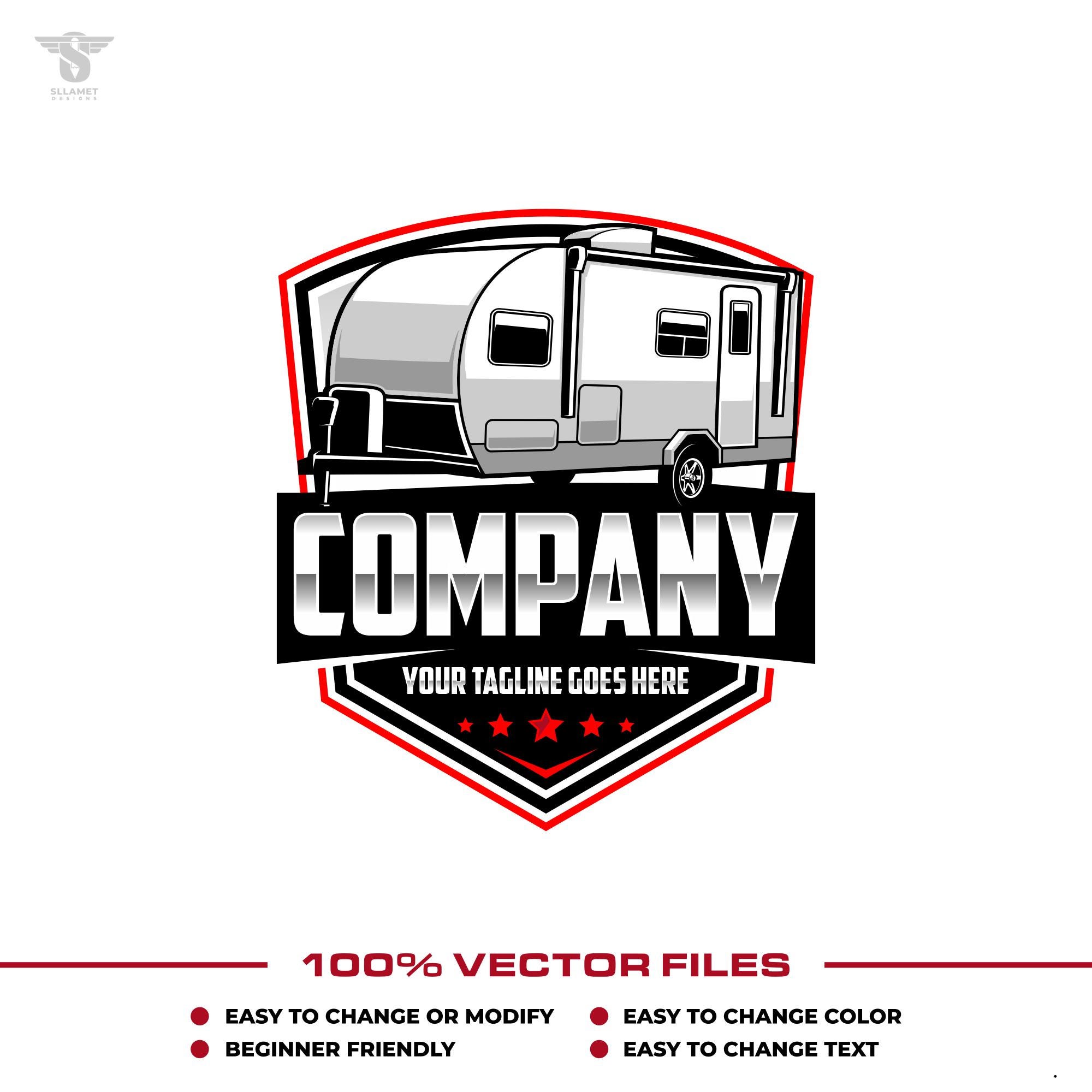 Travel Trailer Logo: RV Camper and Rental Service Vector, Fully Editable