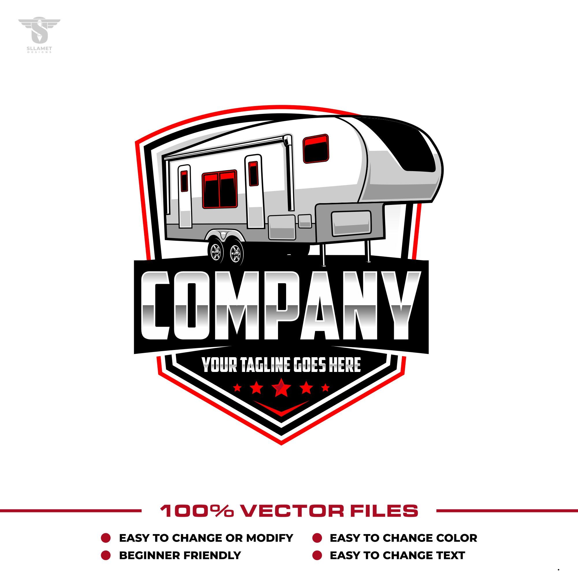Fifth Wheel Logo: Rental Service and Camper Trailer Vector, Fully Editable
