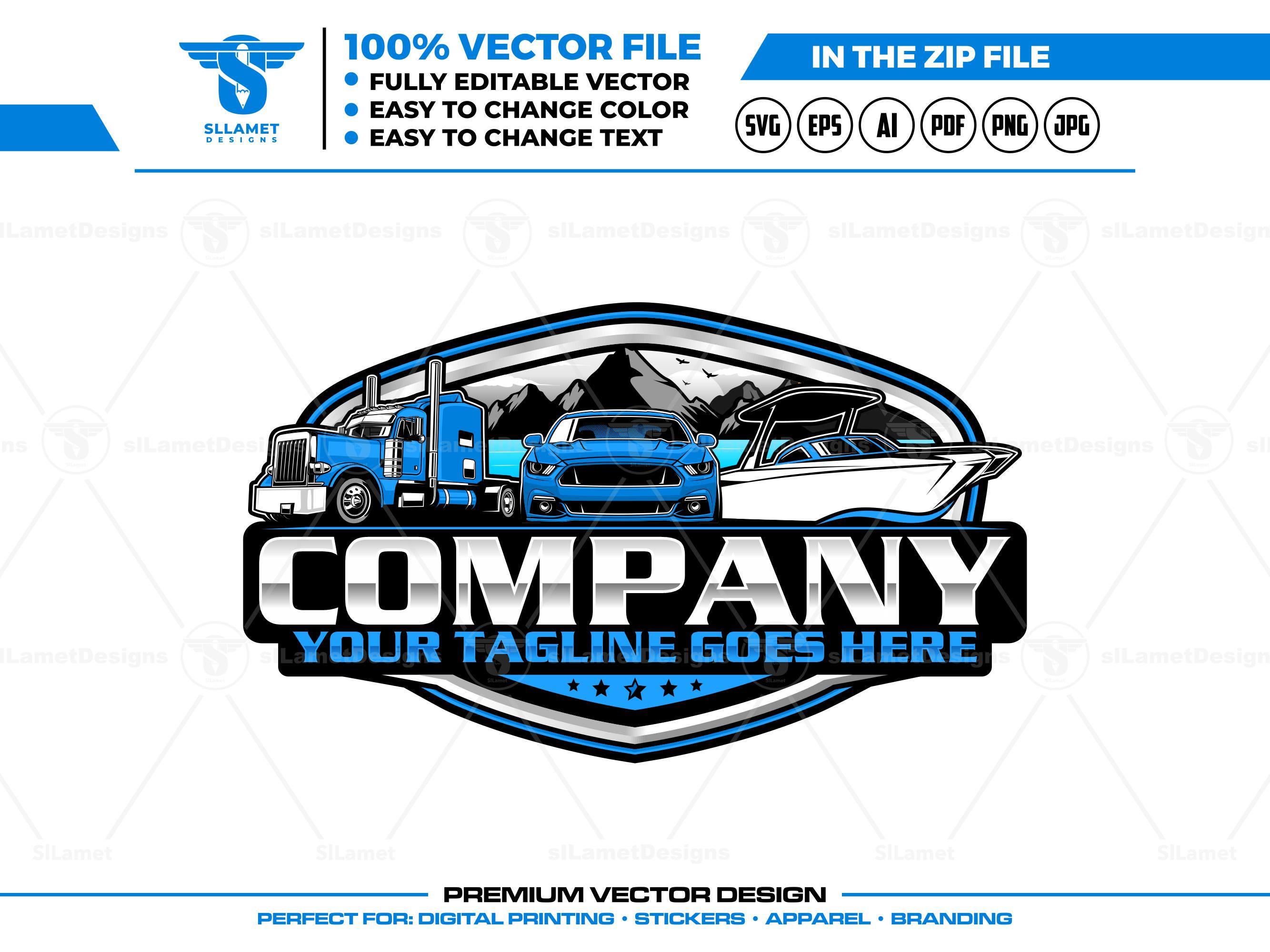 vehicle rental logo, car rental design, boat hire branding, truck rental art, transport rental, hire service logo, logistics vector, automotive design, marine rental logo, professional logo, rental business, custom logo design, multi vehicle logo