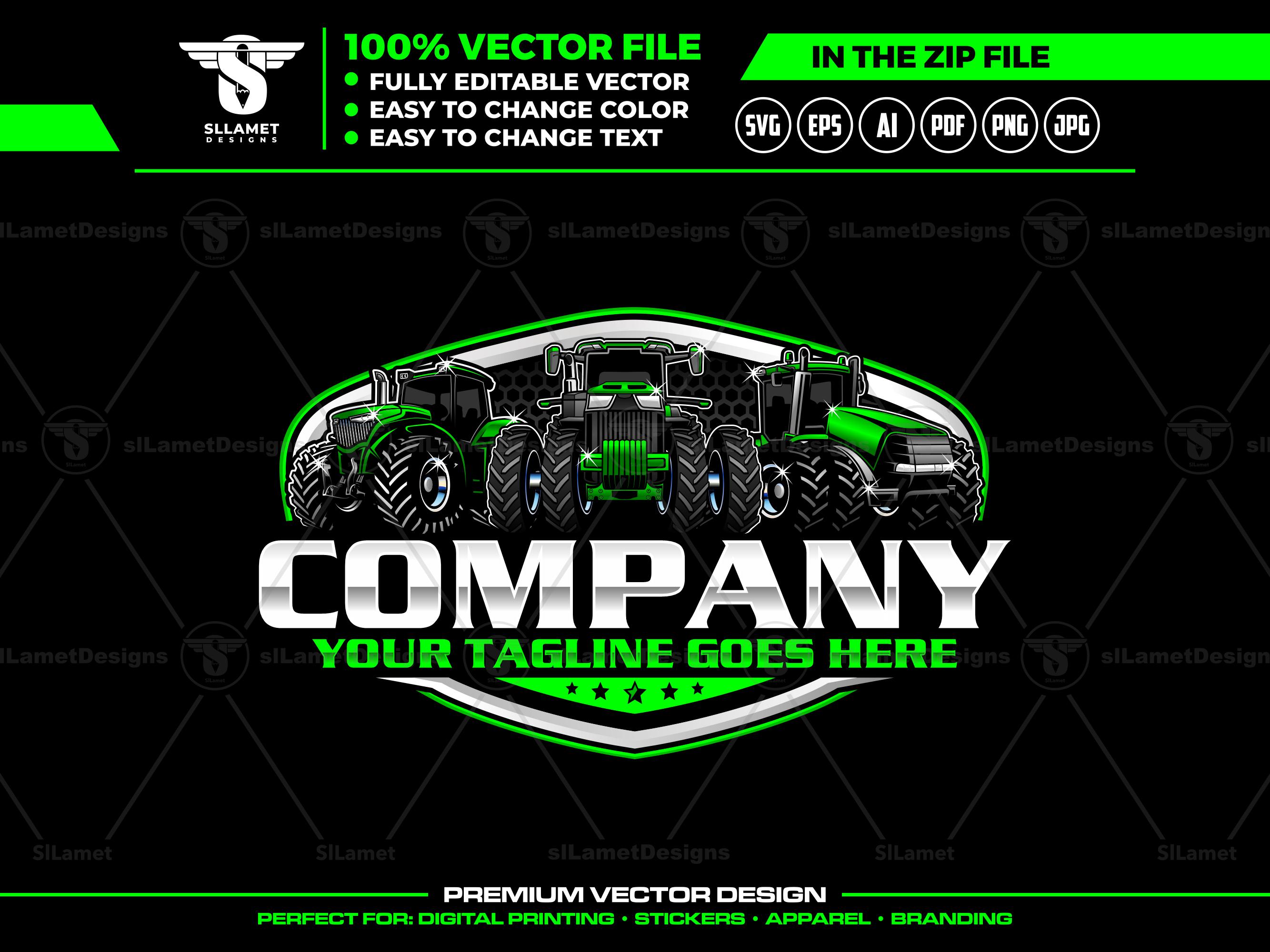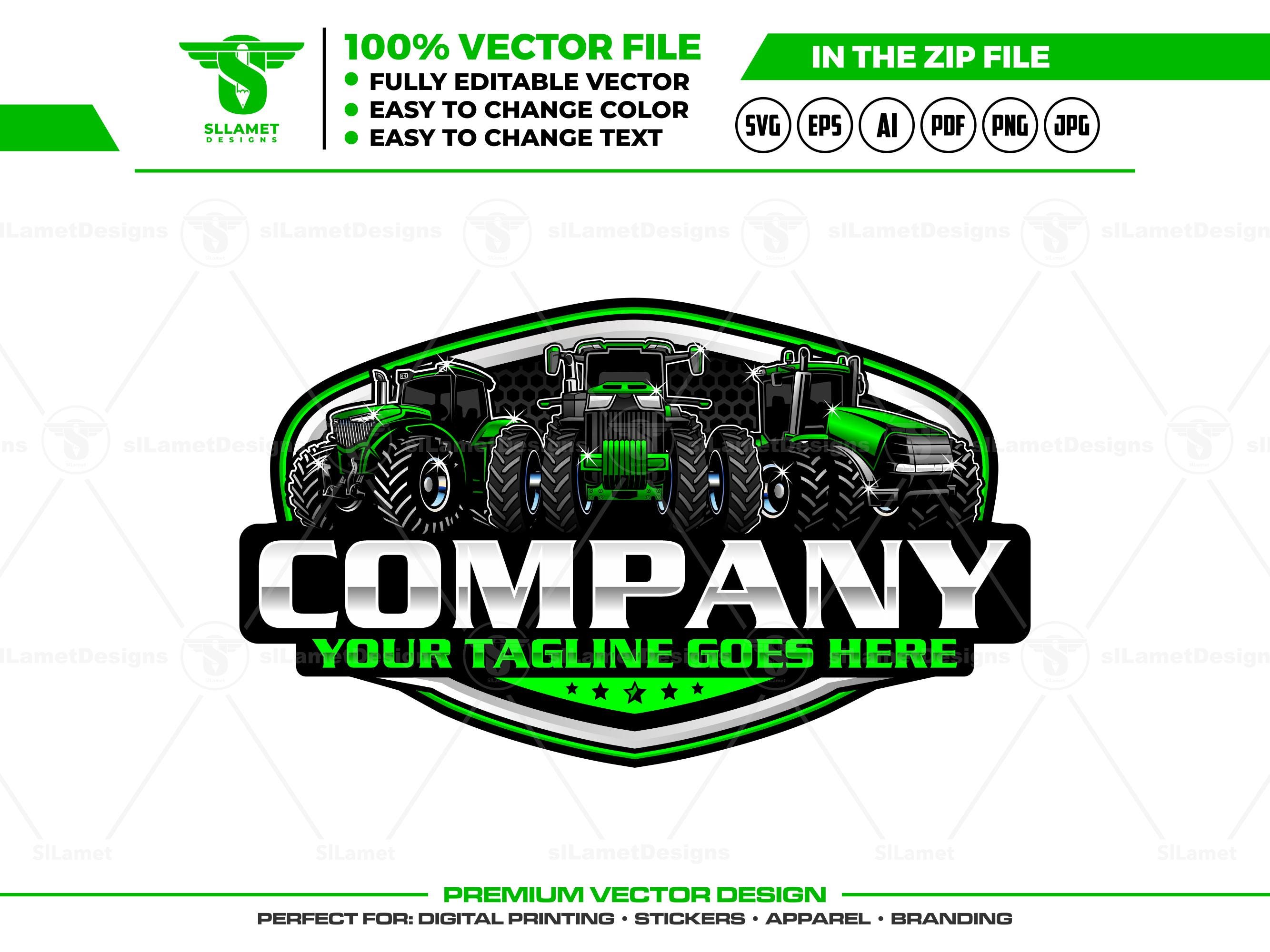 Tractor Fleet, Farming Company, Agriculture Logo, Heavy Equipment, Custom Farm Logo, Farm Service, Machinery Vector, Agriculture Branding, Modern Farm Logo, Construction Logo, Industrial Badge, Green Tractor, Farming Mascot