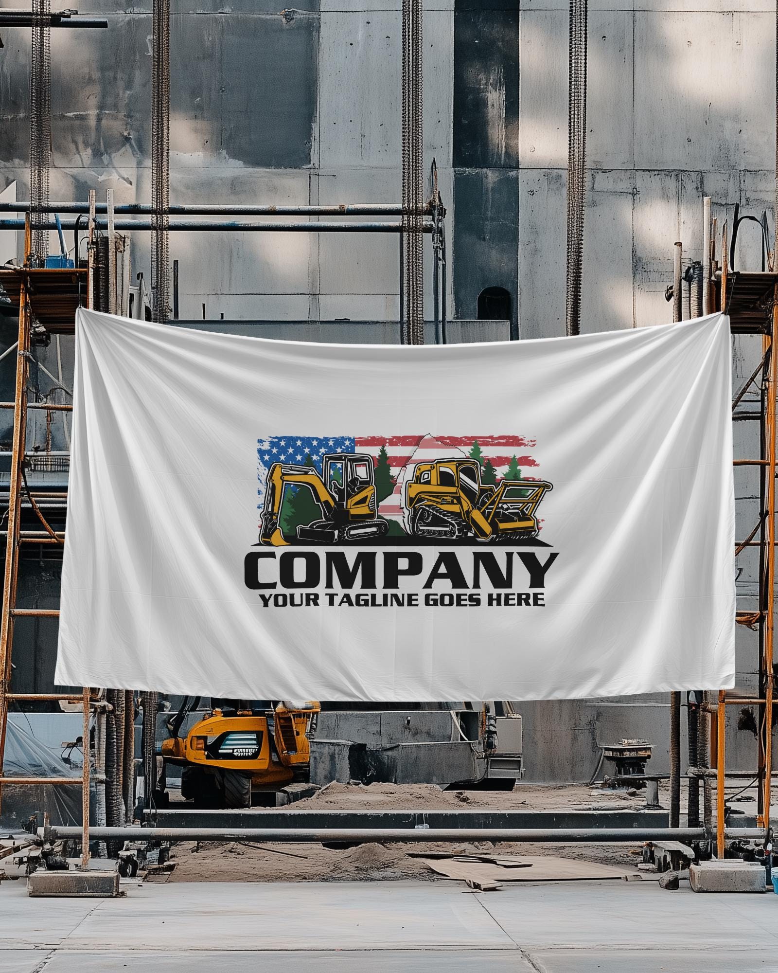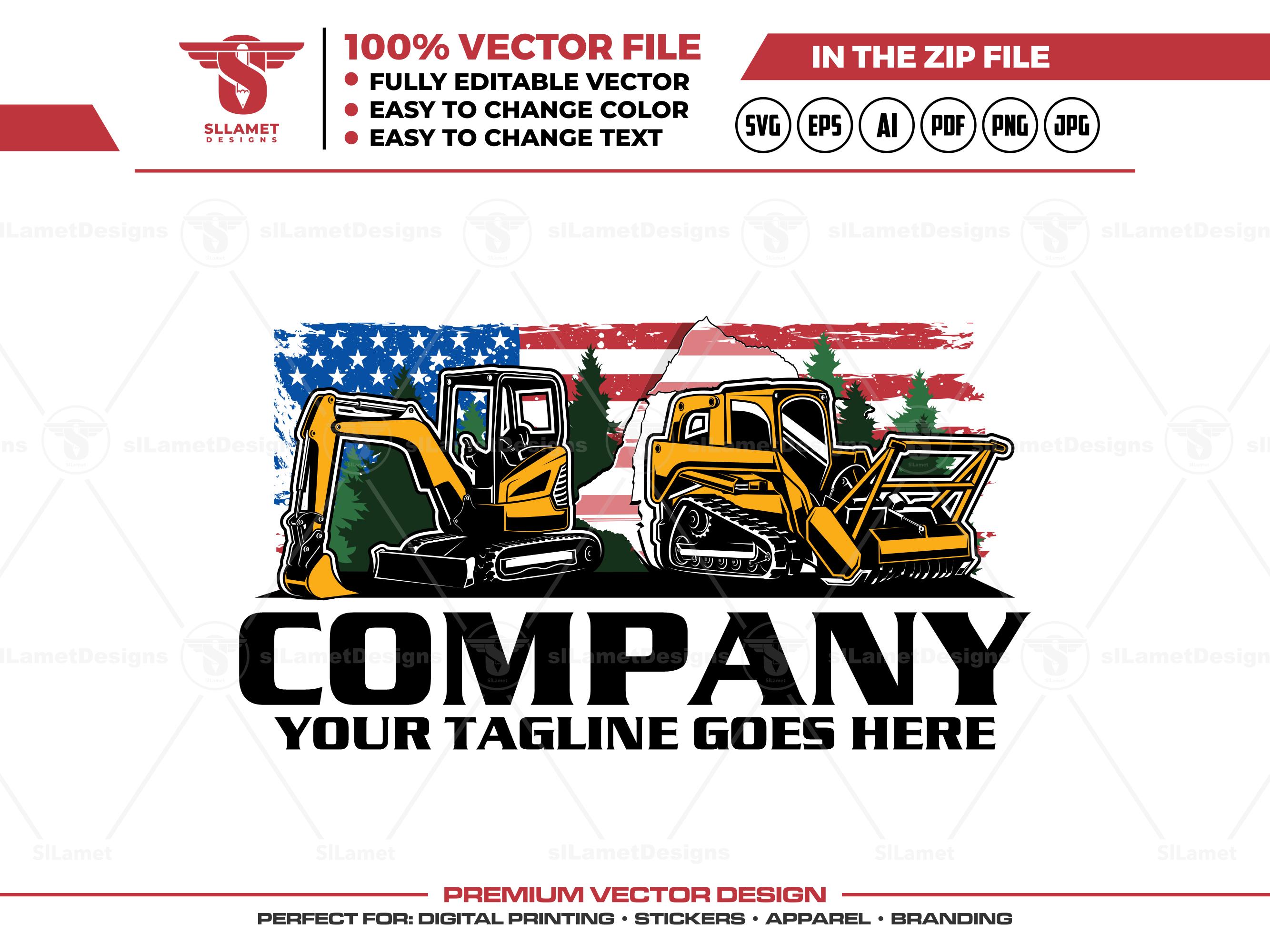 Excavator Logo, Skid Steer Logo, Construction Logo, American Flag Logo, Land Clearing, Forestry Mulching, Heavy Equipment, Patriotic Branding, Excavating Service, Grading Company, Custom Logo Design, Contractor Logo, Forestry Equipment