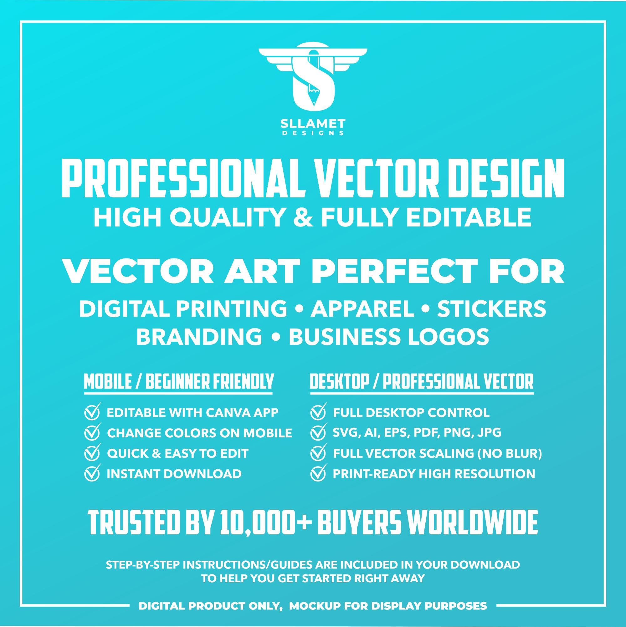 - EPS & AI Files – Industry-standard vector formats for professional editing (Adobe Illustrator, CorelDRAW)