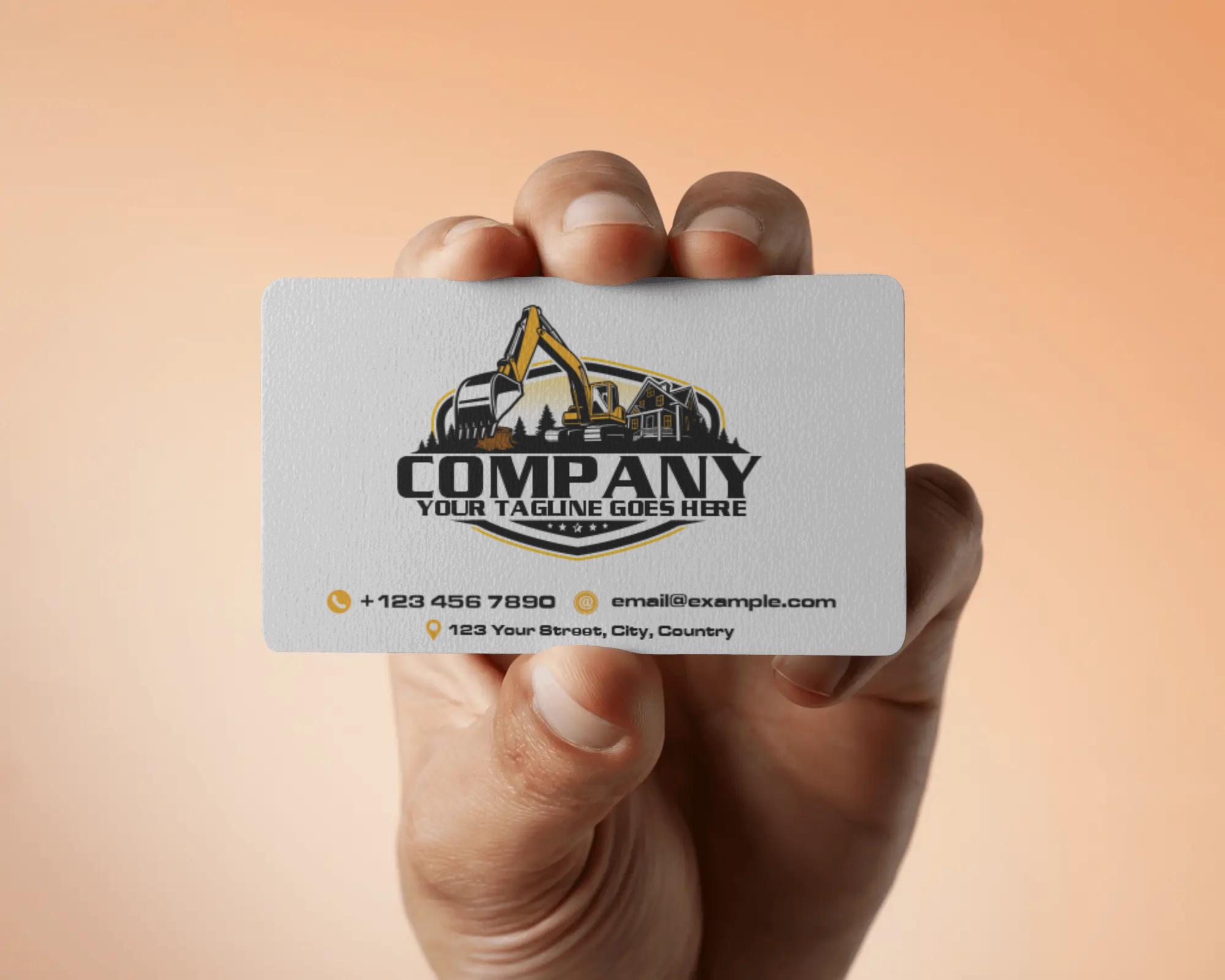 Establish a powerful branding identity with this professional heavy machinery graphic, specifically tailored for backyard renovation and property design firms. This editable vector provides a clean foundation for your ground work services, ensuring your landscaping excavation business looks established and reliable to every client.
