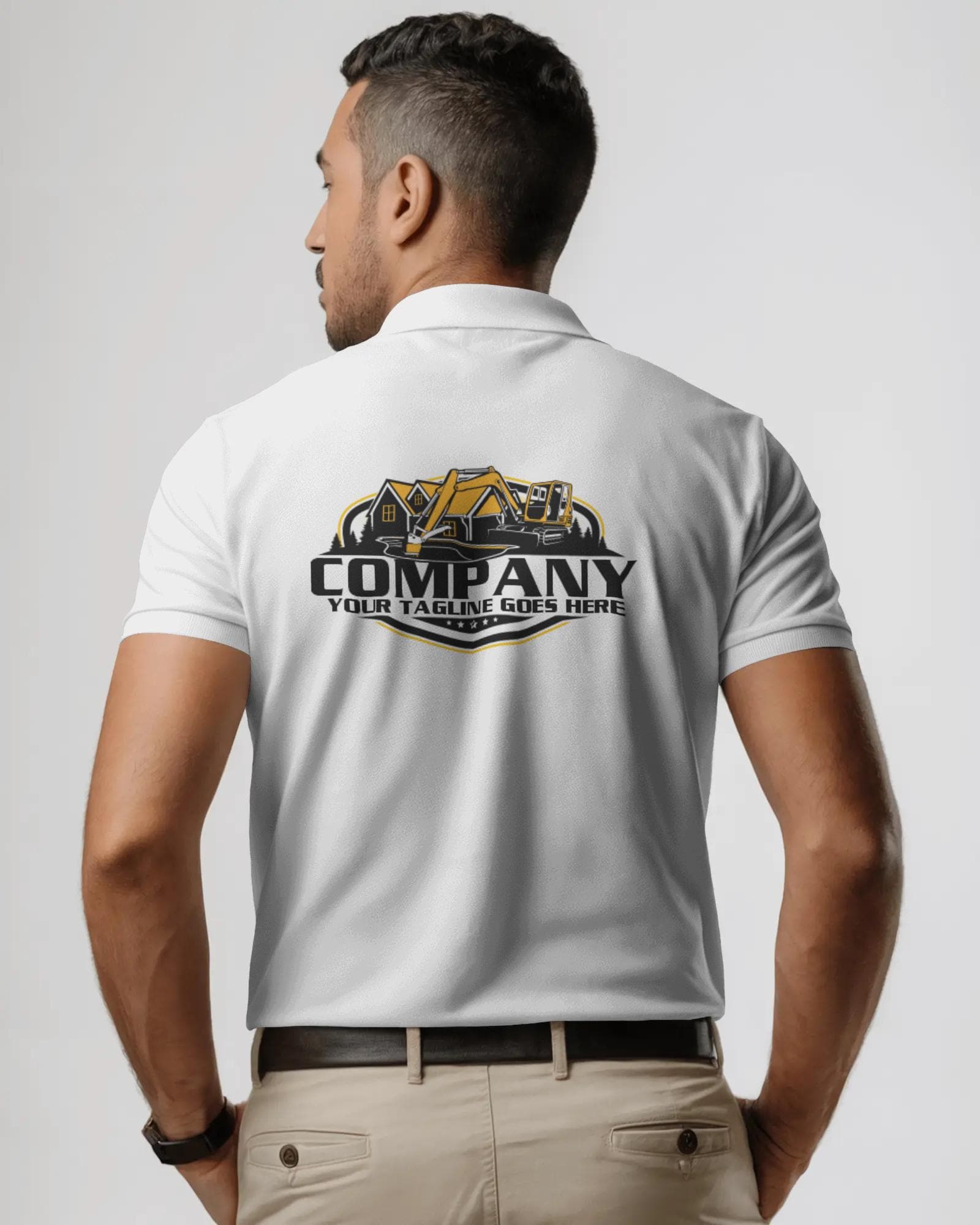 Professionalize your branding identity with this high-quality excavator design, specifically tailored for house contractor or backyard renovation firms. This editable vector provides a clean and modern foundation for your property fix business, ensuring your ground work and site preparation services look established and reliable.