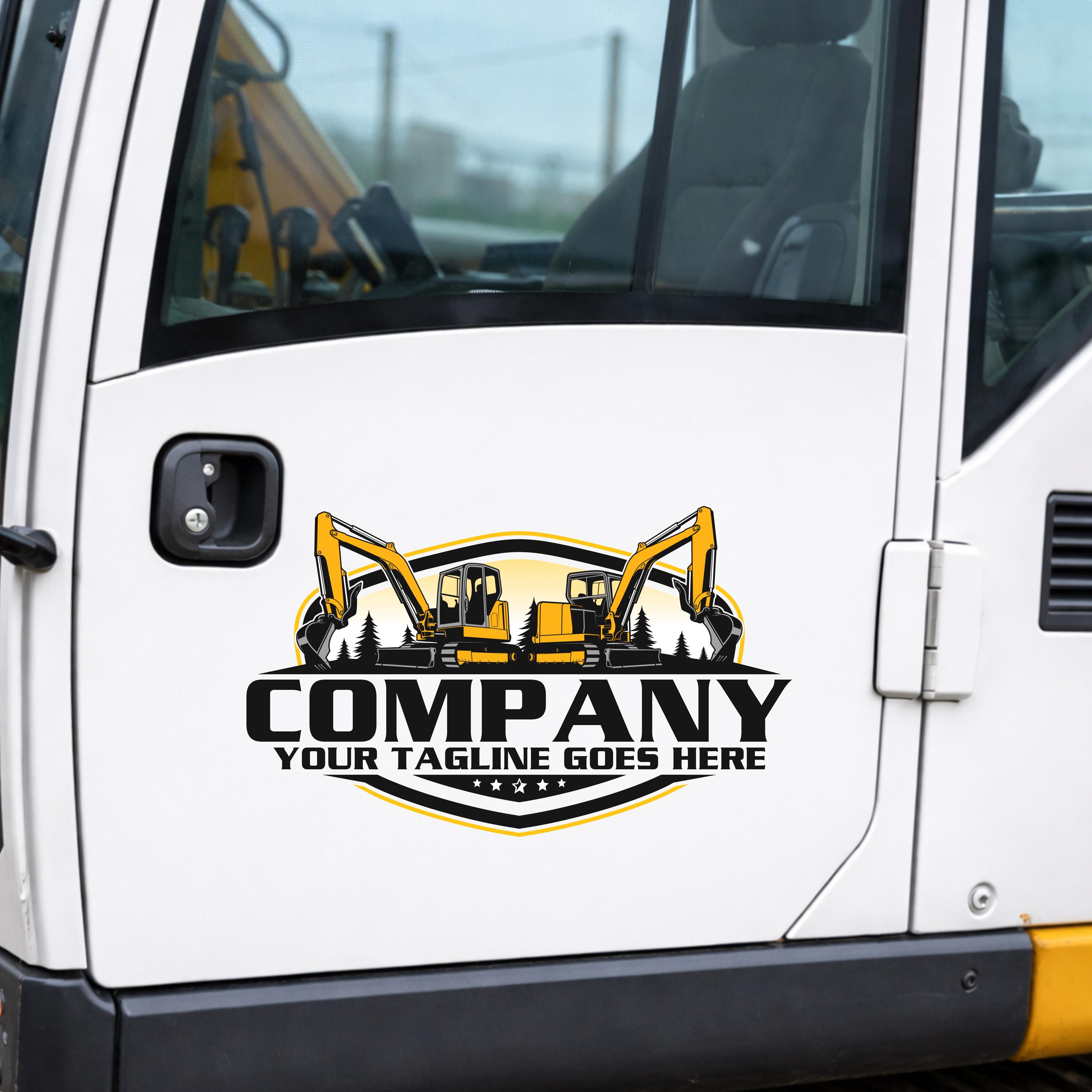 Establish a professional identity branding with this high-quality heavy machine graphic, specifically tailored for earth moving or civil engineering firms. This construction vector provides a clean foundation for your land clearing business, ensuring your site preparation and ground work services look established and reliable.