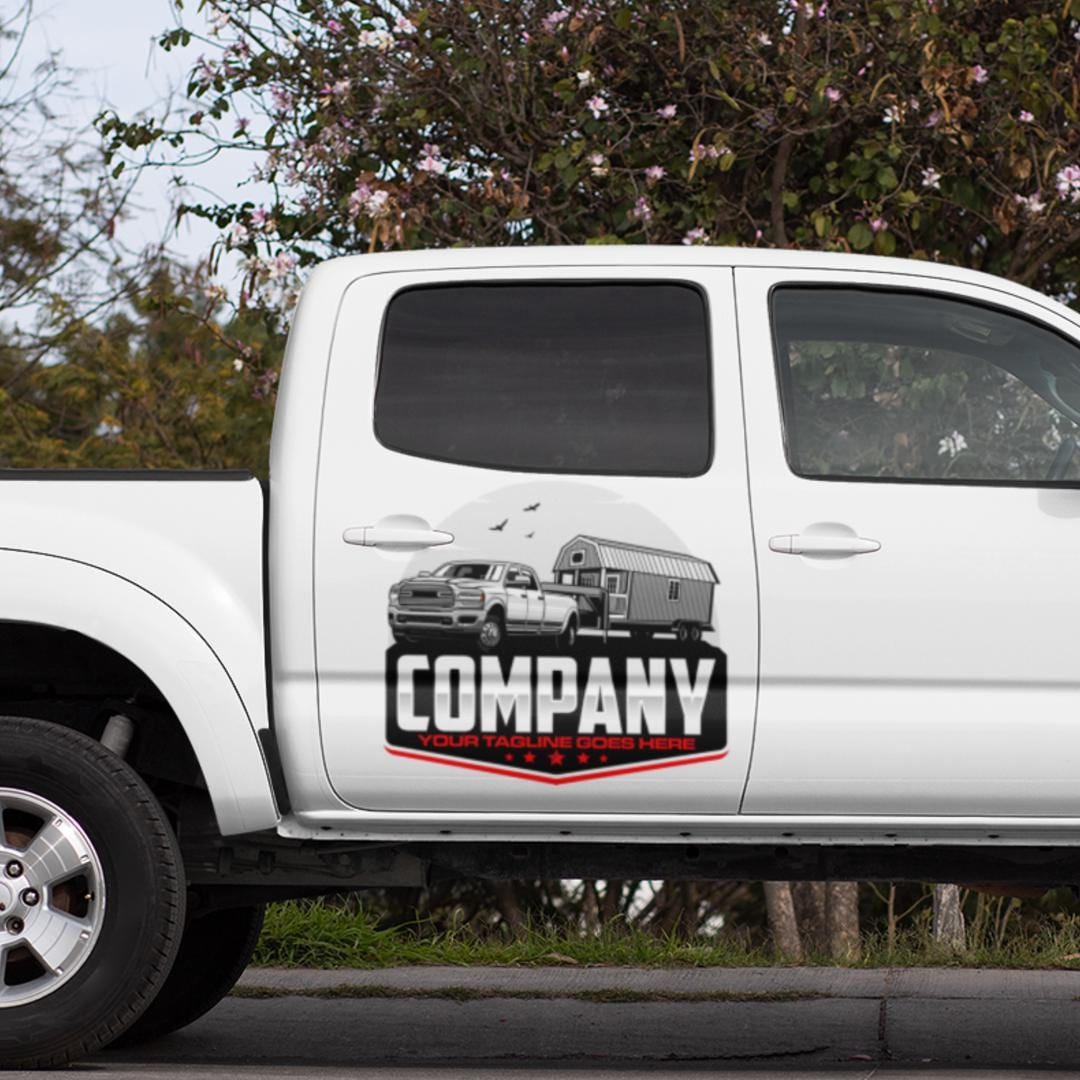 Establish a strong identity branding with this professional logistics tool, specifically tailored for a portable building or cabin transport firm. These vector designs provide a clean foundation for your moving business, ensuring your equipment hauling and delivery services look established and reliable to every homeowner.