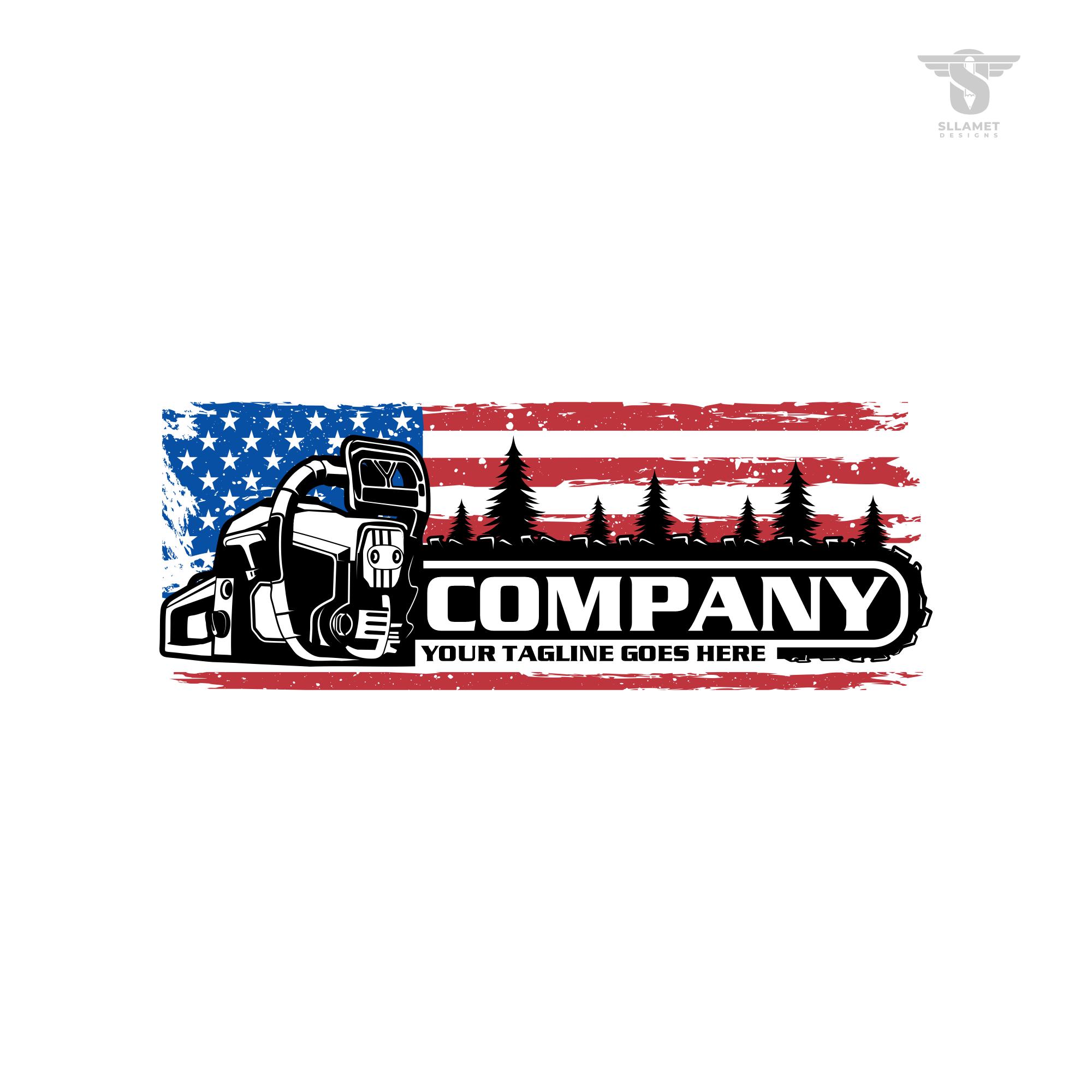 American Chainsaw Logo: Wood Cutting and Tree Service Vector Designs for Identity Branding