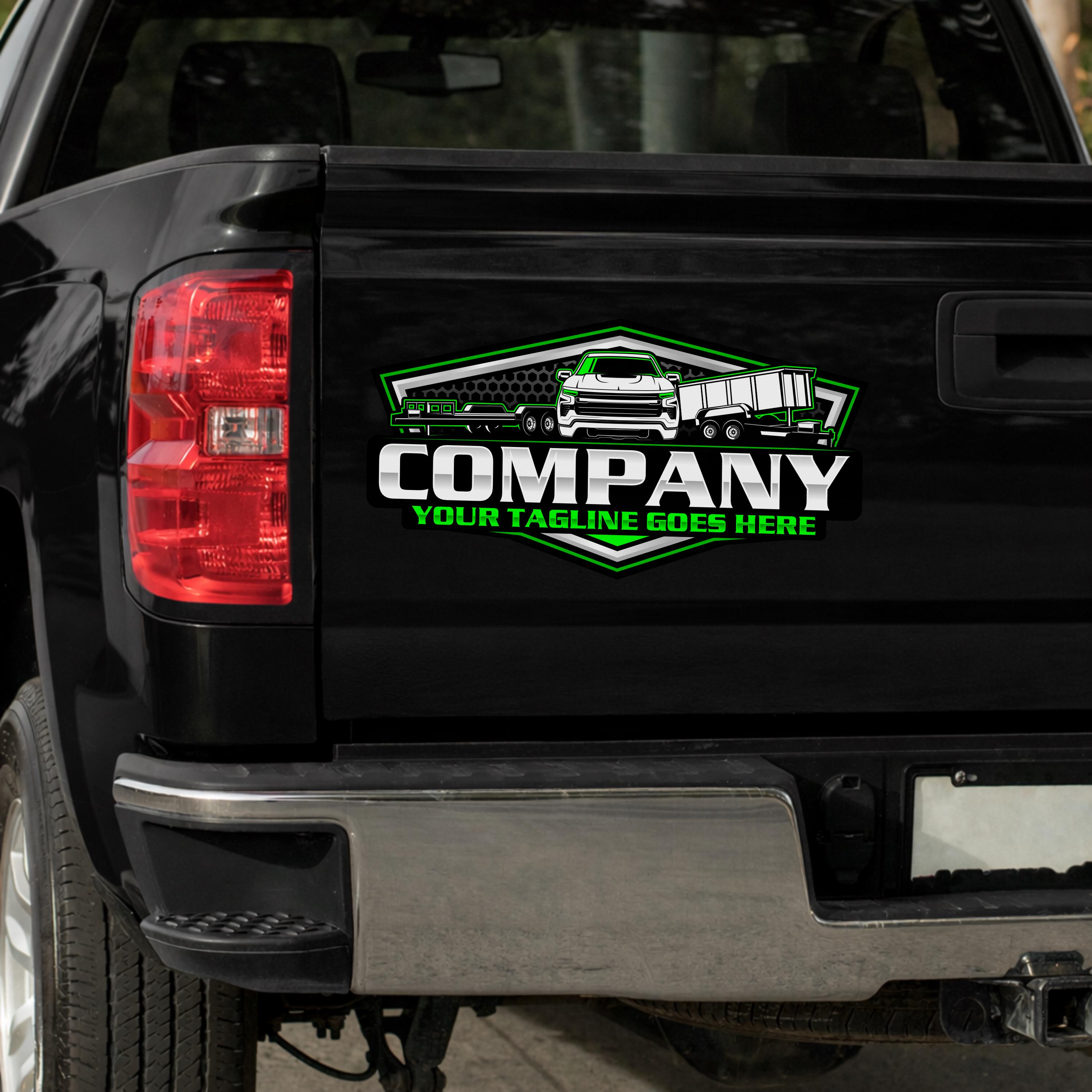 Hauling Logo: Pickup Truck and Dump Trailer Art Vector, Fully Editable