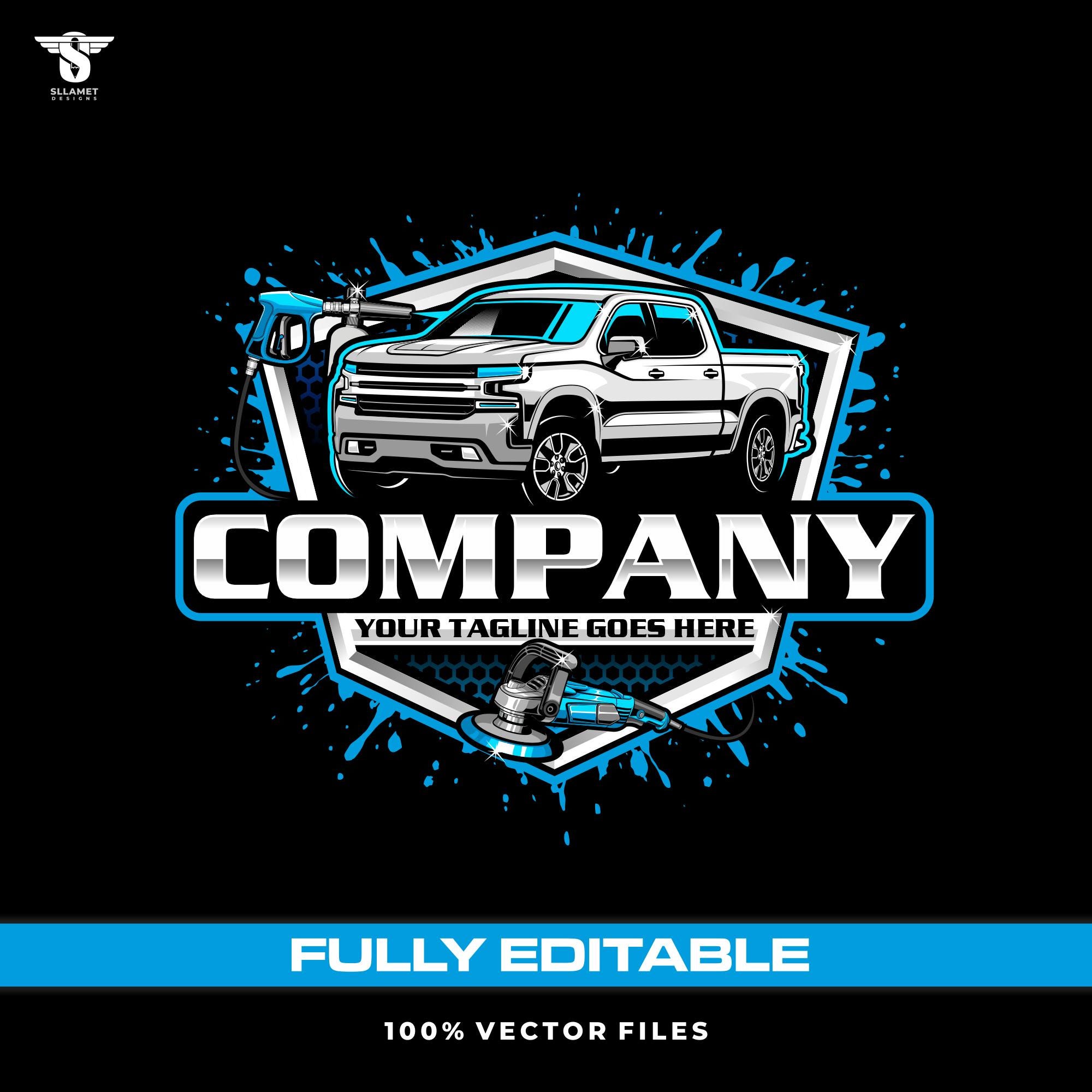 Pickup Detailing Logo: Car Wash and Auto Cleaning Vector, Fully Editable