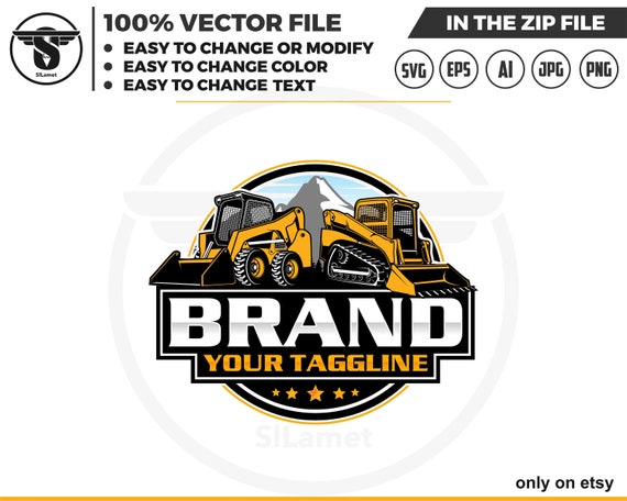 skid steer and excavator logo svg: construction, heavy equipment vector file